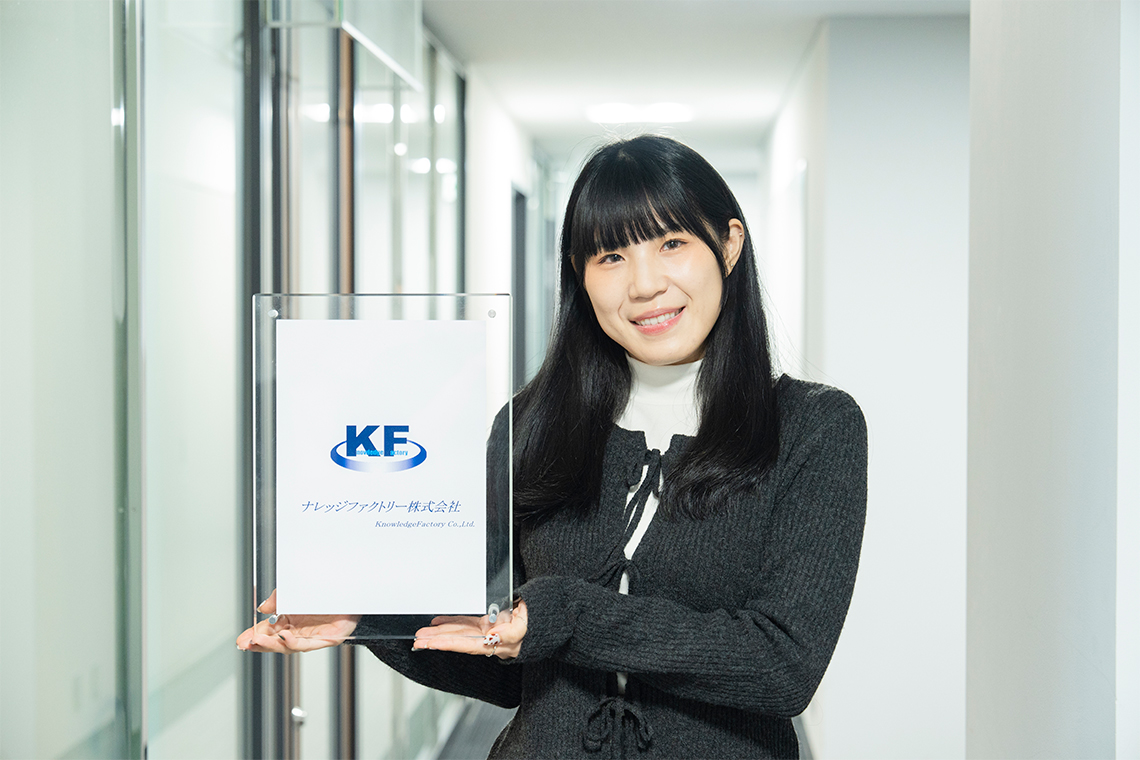 私は現在、ナレッジファクトリー株式会社で初の外国人社員として働いています。最初は不安もありましたが、会社の皆さんがとても優しく、サポートしてくれるため、安心して仕事に取り組むことができています。