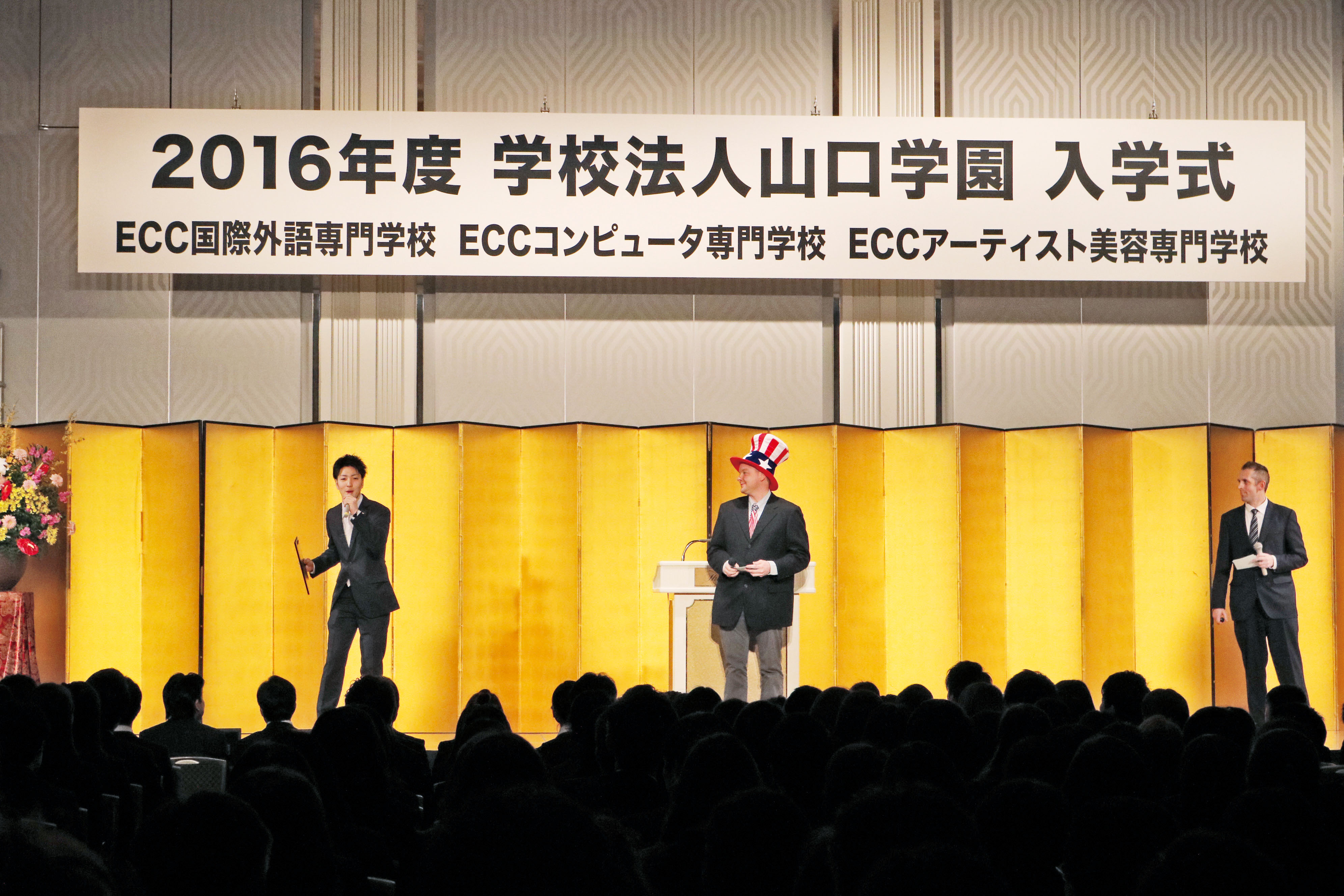 学校法人山口学園の姉妹校:ECCアーティスト美容専門学校・ECC国際外語専門学校・ECCコンピュータ専門学校とともに合同入学式を開催★会場は1,000名以上という数多くの出席者で埋め尽くされます!