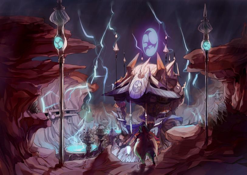 - 私が今回作品を作るに当たってまず壁にぶち当たったのは、世界観をいかに明確に、雰囲気を持たせて、誰が見ても瞬時にそれとわかる風に演出するかでした。魔界というテーマを出されましたが、魔界とわかり、なおかつ個性的なものにしようと試行錯誤を重ねましたが、それがなかなか難しいものでした。背景は、雷で荒れた地に相応しい重苦しい空気感を表現するのに大変奮闘しました。キャラクターは、細かいところまで様々アイデアを振り絞ってデザインしたので是非見て頂けたらなと思います。雷神様の太鼓が自分で一番気に入っています。