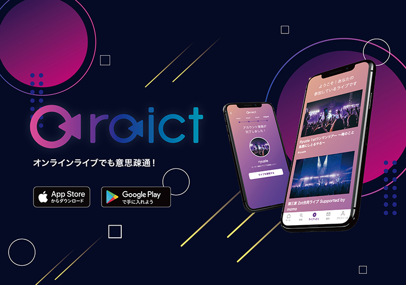 - オンラインライブでスマートフォンをペンライトのように振って、アーティストと盛り上がりを共有できるサービス。従来のオンラインライブの「ファンとアーティストの繋がりを感じにくい」点を、「ペンライトを振る」という慣れた動作で解決する、新しい配信プラットフォームです。ライブ視聴中に沢山スマホを振って、ステージに熱量を届けよう!