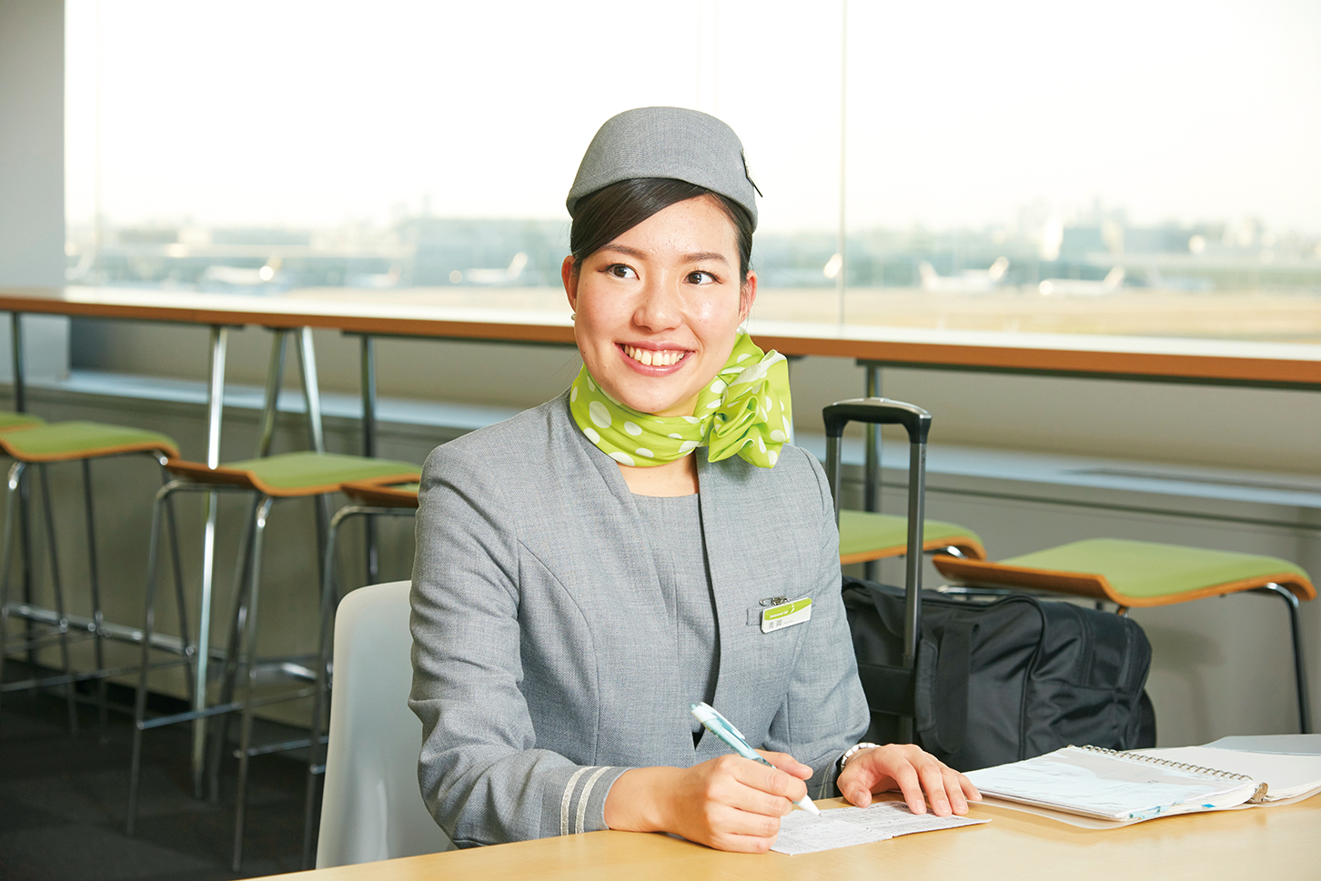 中学生の頃から憧れていたCAになり、1年2ヶ月が経ちました。狭い機内でお客さまに快適な時間を提供することが、私たちの役目。ECC国際外語で先生から学んだ「CAは後ろにも目がある」という教えを胸に、フライト中は常に客席全体を見渡しながら細かな気配りを心掛けています。また、ドリンクサービスやお声掛けなどのシミュレーション授業が日々の業務に役立つことも。入社当初は緊張で頭の中が真っ白になることもありましたが、在学中に学んだことを思い出しながら実践していくうちに、自分らしい接客が徐々にできるようになりました。今の目標は、お客さまやCAの先輩方にも安心していただけるCAになること。そのためには保安やサービスはもちろん、語学の勉強にも力を入れていきたいです。そして将来は一便の責任を担い、後輩たちにも指導できる立場になるのが目標。「CAになりたい」という夢を叶えたときの気持ちを忘れず、これからもっと成長していけるように頑張ります。※2015年に取材