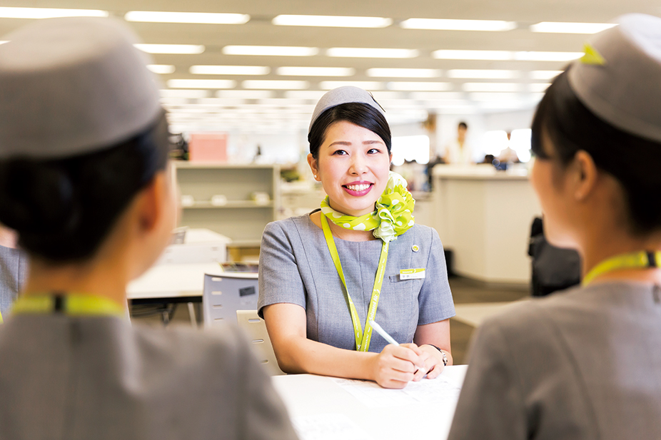 羽田と九州や、九州と沖縄を結ぶ路線にCAとして乗務しています。お客さまにお声掛けする際の姿勢や、ドリンクをお渡しする際の手の添え方など、日々の業務で実践していることは、仕事内容をロールプレイを通じて理解した「CAスタディ」という授業で学んだものばかり。今まさにECC国際外語での学びの成果を実感しています。また、国内線のみの現在でも、外国人のお客さまが搭乗されれば英語を使う機会がありますし、近い将来国際線の定期便がスタートすれば、ますます英語力が必要になります。そこで頼りになるのが在学中の教材です。在学中には毎回の単語テストで着実に語彙力を増やしていったTOEIC®対策。当時のテキストを参考に勉強しています。当面の目標は、先輩CAに少しでも近づくこと。スピーディーで的確な判断力や、テキパキと先回りして接客する行動力を身につけて、将来は国際線で活躍できるように成長していきたいです。※2017年に取材