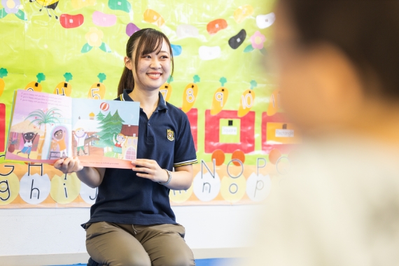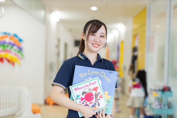 インターナショナルスクールで1歳児クラスの保育士として働いています。保育はネイティブスタッフとのペアで行い、日本人保護者とのやりとり以外は常に英語を使っています。1歳児は、初めての集団生活を経て大きく成長する時期にあります。保護者と離れ離れになり一日中泣いていた子どもが数ヶ月ですっかり園生活になじみ、私のファーストネームを呼びながら抱きついてくれたり、笑顔で登園して英語で挨拶してくれたり、子どもたちの成長に毎日元気をもらっています。入社当初は私も不安でいっぱいで、先輩に事細かに指示を仰いでいました。ところがある日、ネイティブのスタッフから「You don't need to worry about it. Just have fun!(何も心配しないでいいよ。楽しんで)」と言われ、子どもたちと過ごす時間を楽しむ大切さを思い出しました。日本人だけでなく外国人スタッフも入り混じる職場ならではの環境で働けることも、この仕事の魅力だと思います。