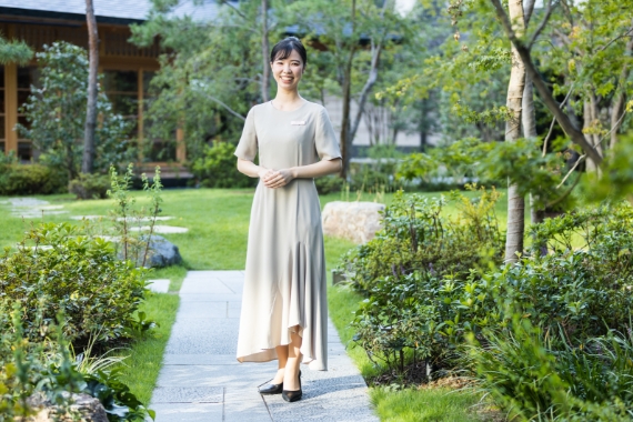 レストランのレセプションとして勤務しています。主な業務は、予約・顧客管理、ゲストエスコート、会計などです。ホテルの業務は、学生時代にも海外インターンシップやアルバイトで経験していましたがすべて宿泊部門だったので、レストラン部門は初めてです。最初は季節や期間ごとに変わるお料理やお飲み物を覚えるのが大変でしたが、慣れてくると「来月はどんなお料理かな」「こんなお飲み物もあるのか」と知識が増えていくワクワク感に変わりました。レセプションがお客さまと接するのはご予約を承るときや、お席にご案内するときなど非常に限られた時間です。しかしご希望や不安をお持ちのお客さまから事前にご相談いただくこともあり、対応したお客さまが当日、ご用意したお席でくつろがれ、ご提案したお料理に喜んでいただき、笑顔でお食事をされている姿を見ると私も幸せな気持ちになります。