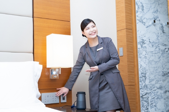 もともと旅行が好きだった私は、ホテリエを目指してECC国際外語のホテルコースに入学。授業では「フロントオフィス」の内容が印象に残っていて、実際に学んだ知識・スキルはゲストリレーションの業務を行う上でも役立っています。また「レストランサービス実習」で習得したサービス中の身のこなしは、急遽ヘルプで入ることになった宴会で活きました。大きなお皿を何枚も一度に運んだり、テーブル間をスムーズに移動したりと体が自然と動き、レストラン部門のスタッフに驚かれました。2年間で磨いた英語も毎日の業務でフル活用。海外から来られたお客さまの対応はもちろん、社内で働くスタッフも多国籍のため情報共有やメール連絡にも英語は欠かせません。TPOに合わせた言葉選びができたり、お客さまのご希望を言葉の端に感じ取ったりと、高い英語力のおかげで、おもてなしの幅が広がっているように思います。
