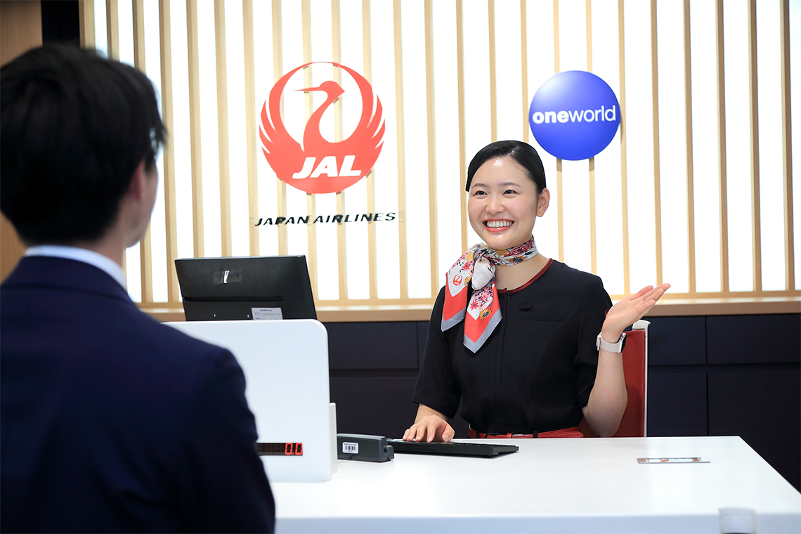 中学生の時に、航空会社で働くグランドスタッフに密着するテレビ番組を見ました。さまざまな国の人々が行き交う場所で、英語を使ってテキパキと仕事をこなすグランドスタッフたち。その一人が搭乗口に時間通りに来ないお客さまを走って探しに行き、お客さまが無事に搭乗すると「ご協力ありがとうございました」と頭を下げる姿に驚きました。間に合わなかった方にお礼を伝えるなんて。日本人気質のおもてなし精神に感銘を受け、グランドスタッフを目指すきっかけとなりました。そして夢を叶えた現在は、メインベースコースの地上係員として、カウンター業務の責任者を任されています。後輩がひとりで仕事をこなせるまで付き添いながら指導にあたることも。後輩が海外のお客さまに堂々とコミュニケーションをとる姿を見ると良い刺激になりますね。「私もどんな仕事を任されてもチャレンジしよう」という前向きな気持ちになります。
