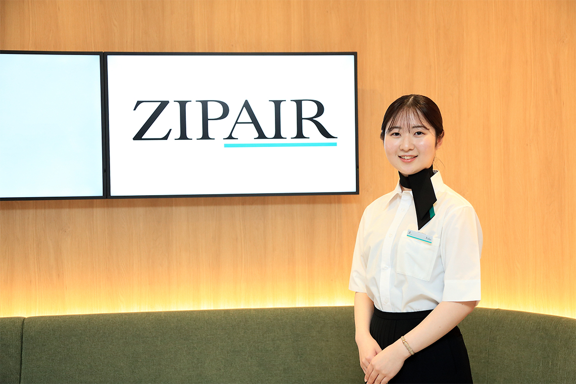 小さな頃から飛行機が大好き。空港内で働きたいという思いがありました。母に「やりたいことを勉強したら?」と背中を押され、高校卒業後は大学ではなく、エアラインコースのあるECC国際外語へ。2年間学んだのちにエアライン業界への就職に挑んだのですが、1度目はコロナ禍で募集に恵まれず、 料亭旅館で仲居として働いたのちに2度目のチャレンジで内定をつかみ取ることができました。私が就職したZIPAIR Tokyoは、キャビンアテンダントとグランドスタッフの両方の業務を担当できるのが魅力。長く働くなら「どちらもやってみたい」という願望があったので、好奇心旺盛な私にぴったりの職場だと思います。また、この仕事はフライトの都合で遠方の友達とも会うことも可能。ECC国際外語の同期もたくさんエアライン業界で活躍しているので、会っておしゃべりするのが息抜きになっています。
