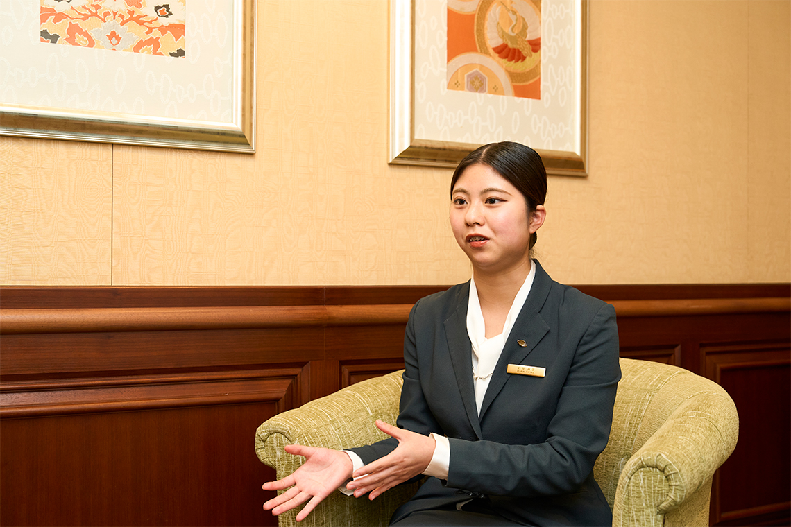 これまでの仕事で特に印象に残っているのは、日本文化を英語で説明する難しさです。茶室や相撲、着物について尋ねられた際に答えられず、日本人でありながら伝えられなかった悔しさをバネに、文化理解を深めようと努めてきました。今では「日本の魅力をもっと正しく、わかりやすく伝えたい」という思いが、日々の学びの原動力になっています。加えて、ヨーロッパにあるグループホテルでも働きたいという夢があり、中国語の勉強にも力を入れています。多言語を駆使し、幅広い文化に触れながら成長することで、より多様なお客様に満足いただける存在を目指しています。進路を考える高校生の皆さんには、「憧れを大切にしてほしい」と伝えたいです。私自身、マンダリン オリエンタル 東京という憧れの場所に飛び込んだからこそ今があります。不安や怖さがあっても、その先にしか見えない景色があります。だからこそ、自分の“なりたい姿”や“やってみたいこと”を信じて、まずは一歩、踏み出してみてください。