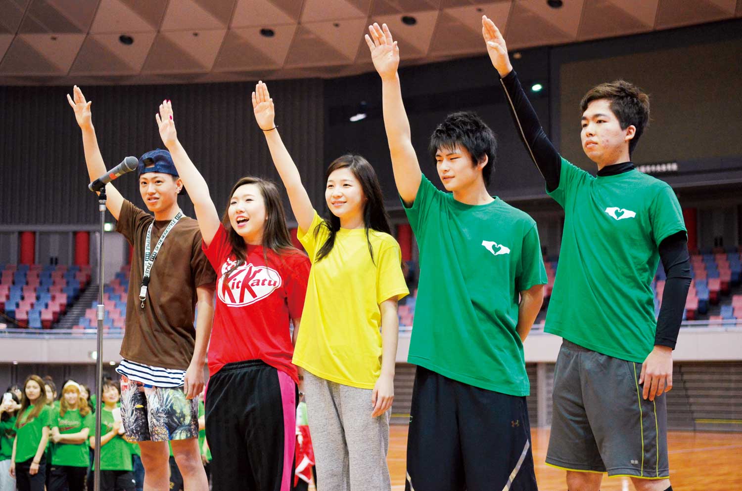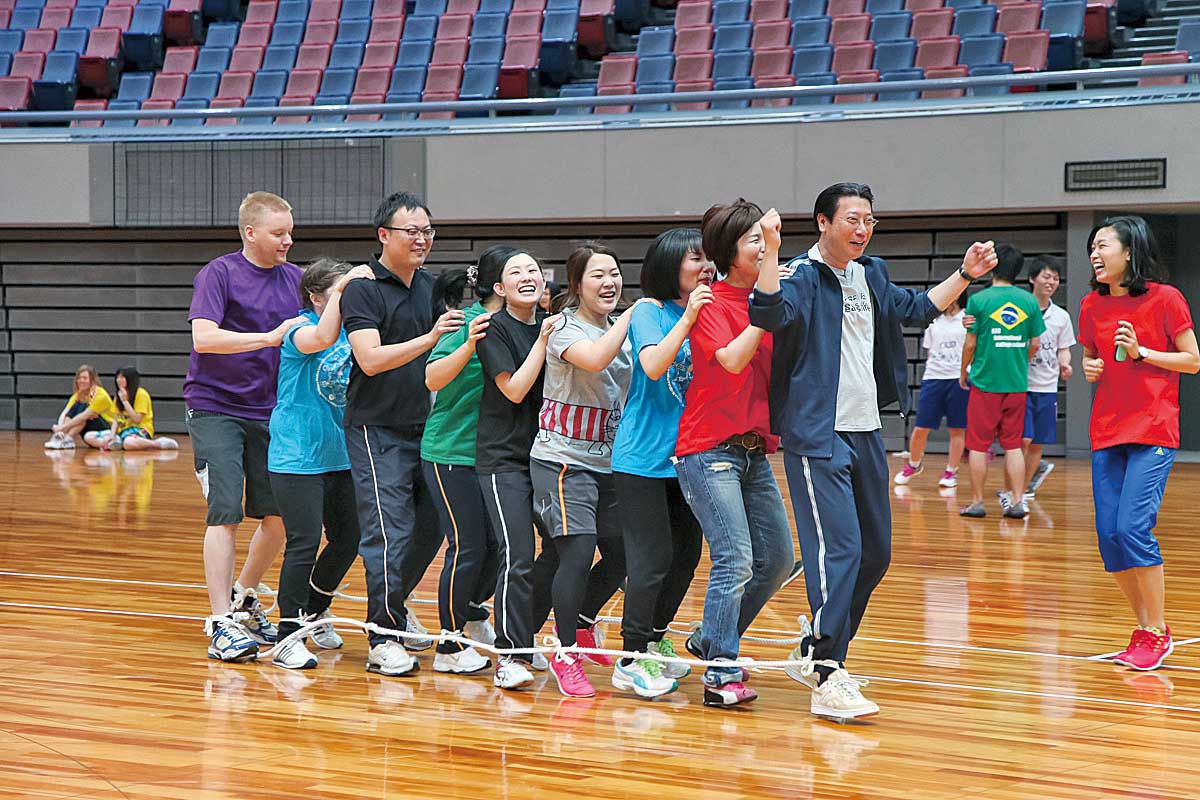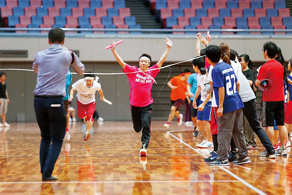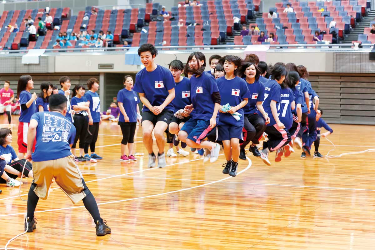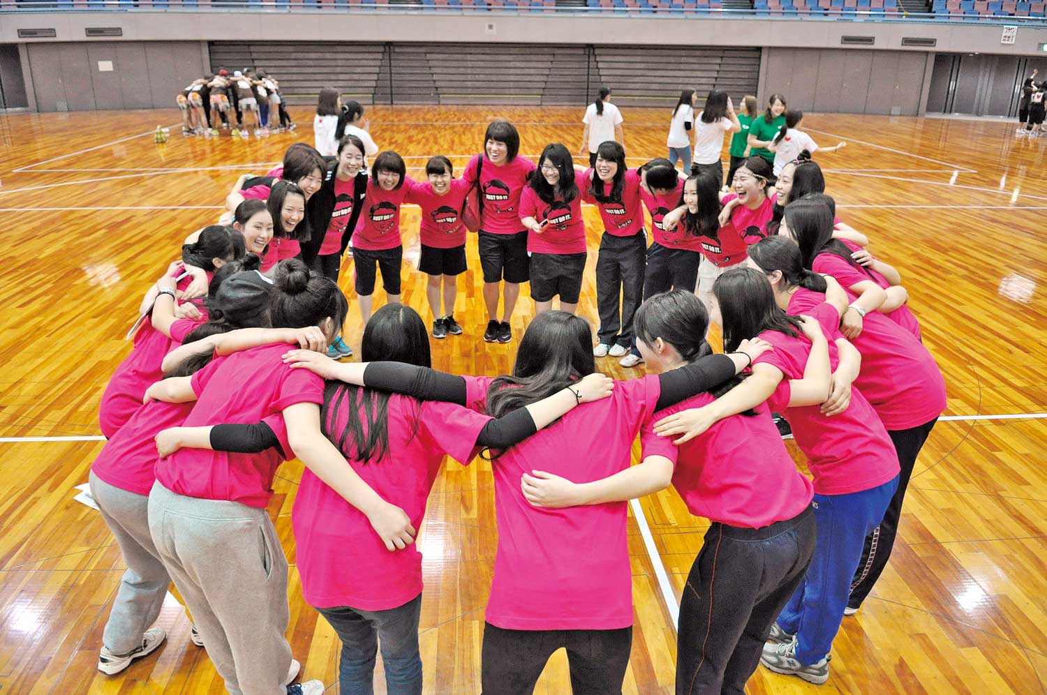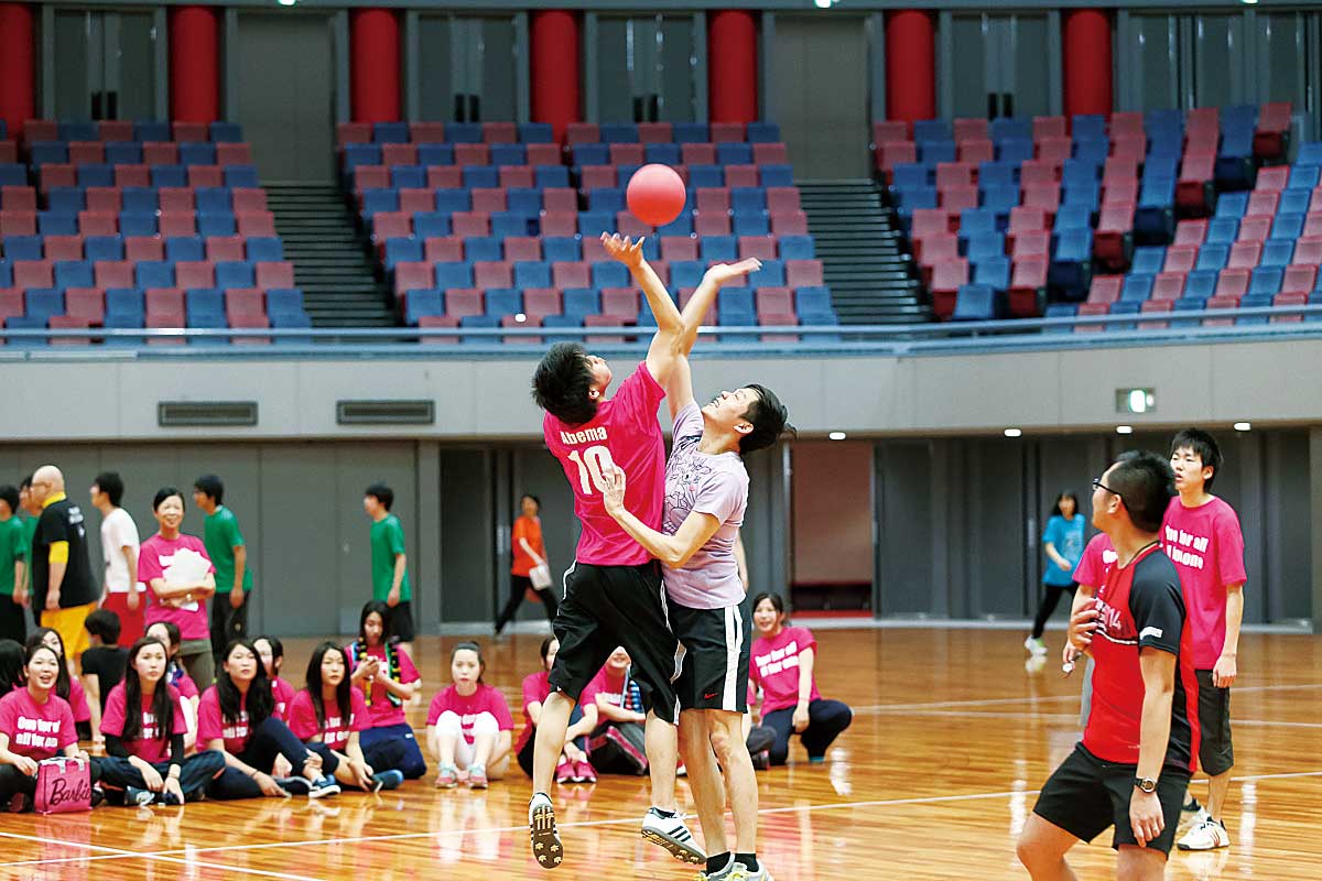 手作りのユニフォームが鮮やかに体育館を彩ります!コース別の対抗戦で白熱する競技にクラスメイトとの絆が強まります♪