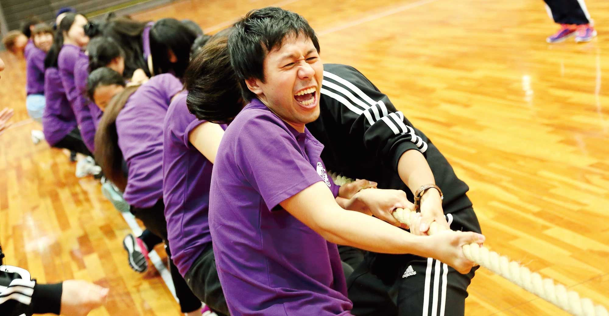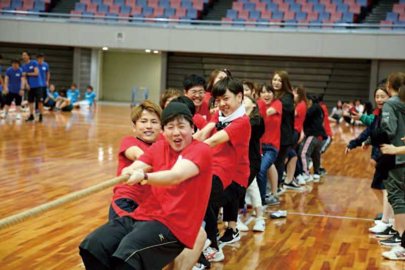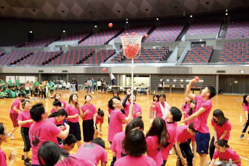 手作りのユニフォームが鮮やかに体育館を彩ります!コース別の対抗戦で白熱する競技にクラスメイトとの絆が強まります♪