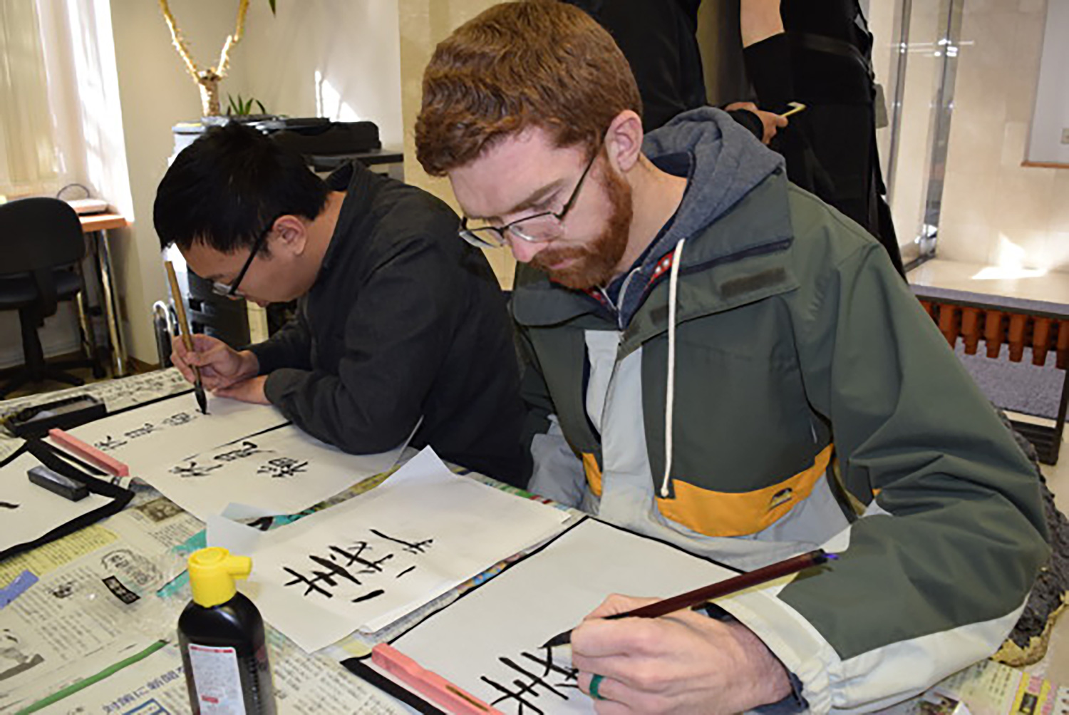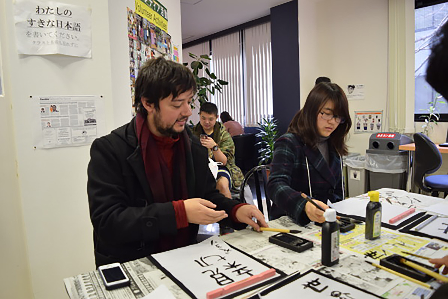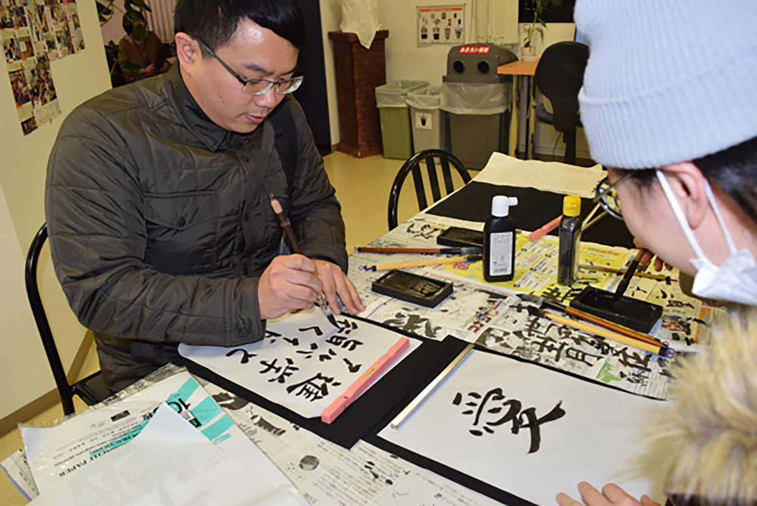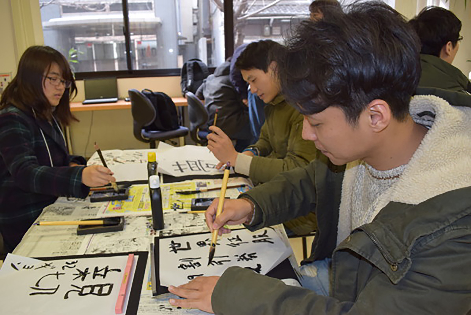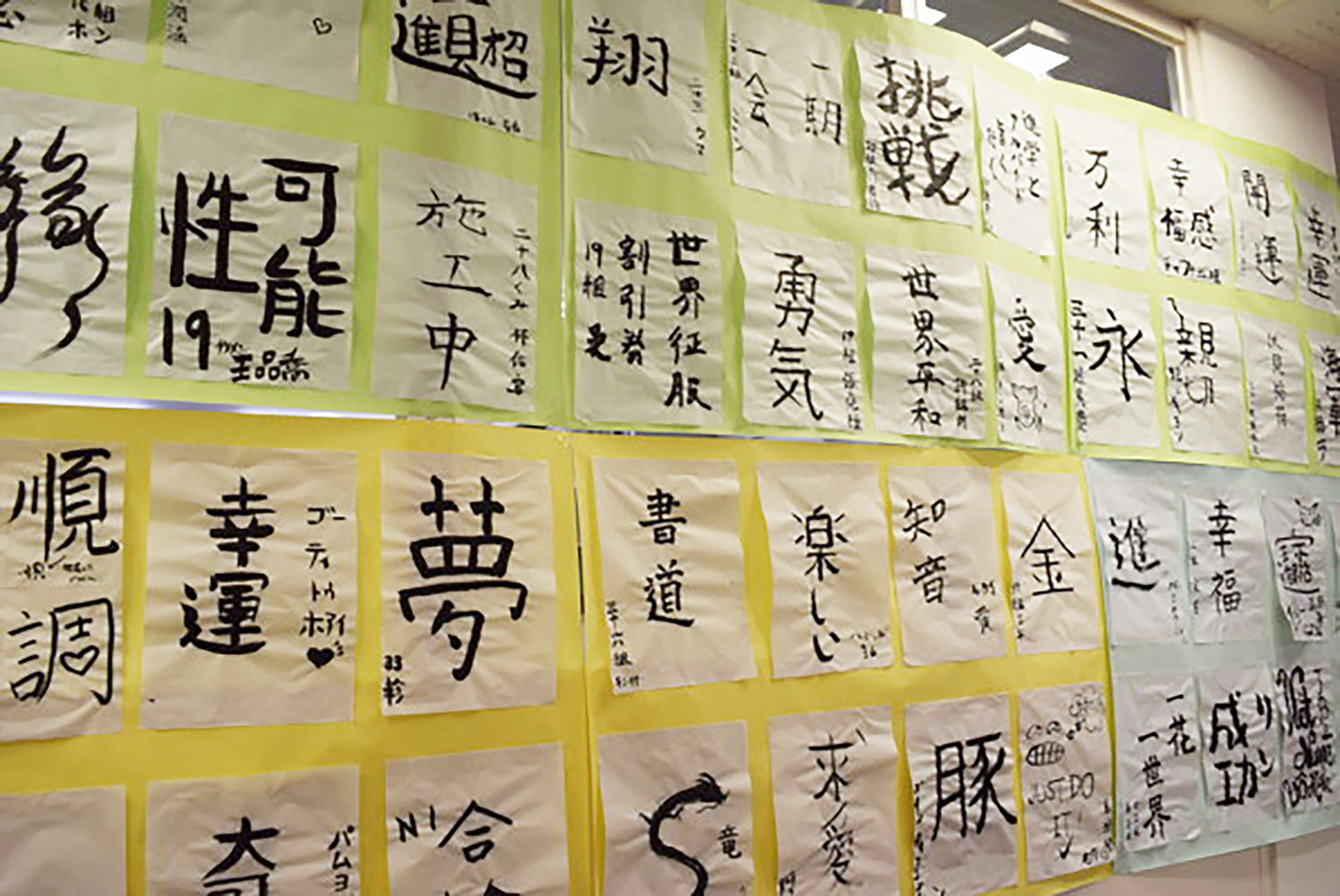 学生たちも筆を振るって、自分の好きな言葉を書いていました。