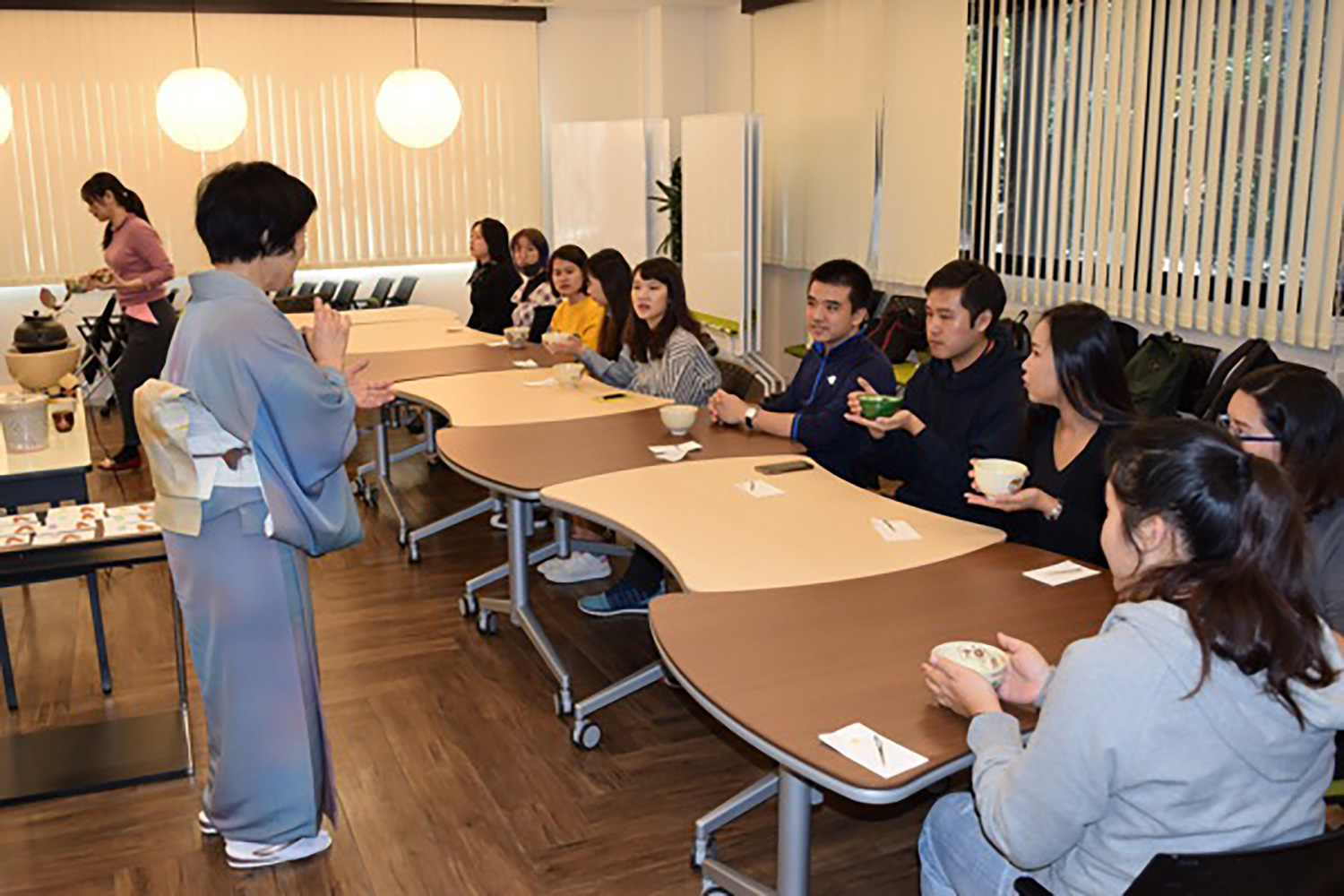 初めての留学生も多く、興味津々!楽しくて時々厳しいお茶の先生から、茶道の精神や作法について学びました。