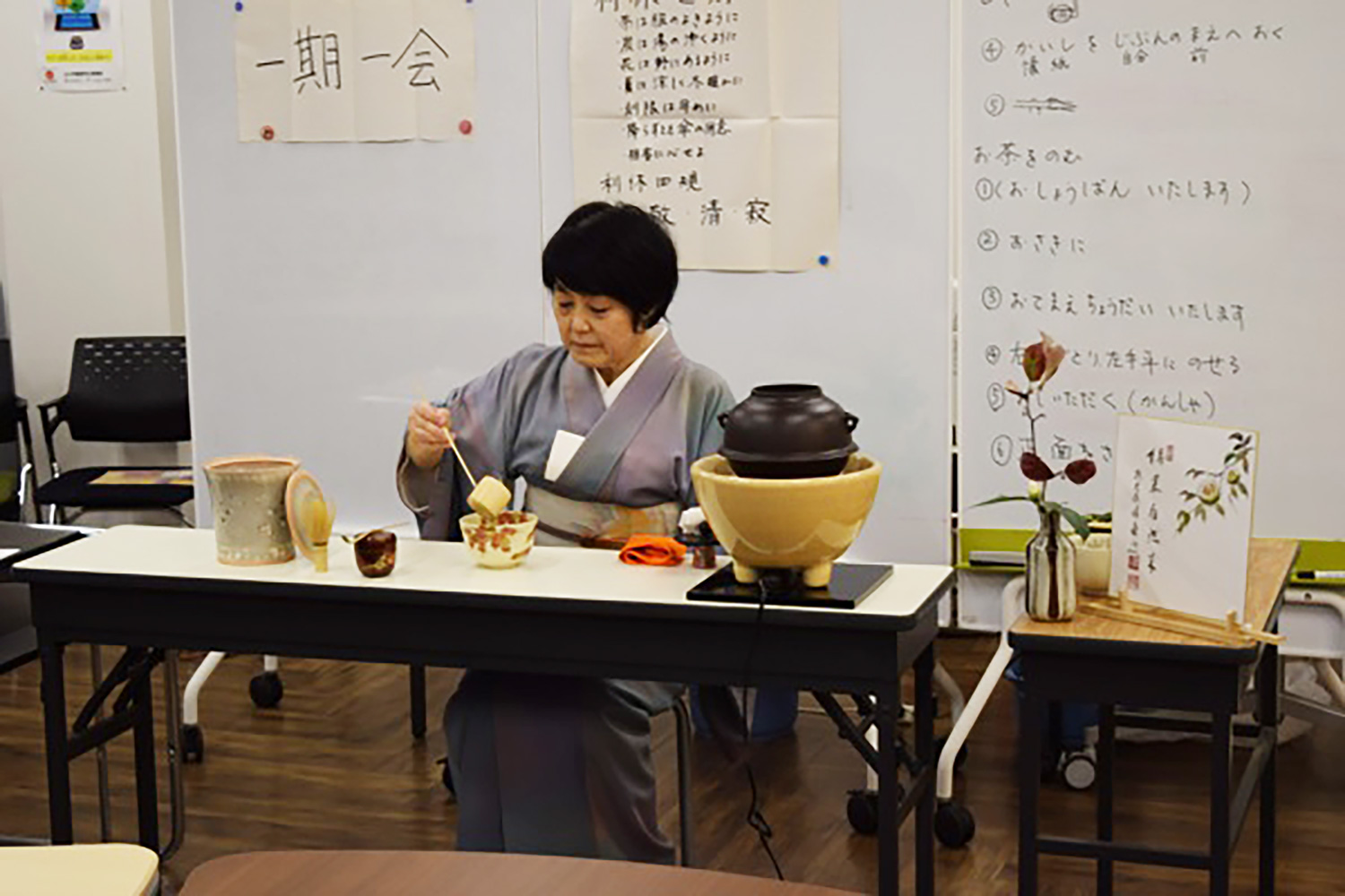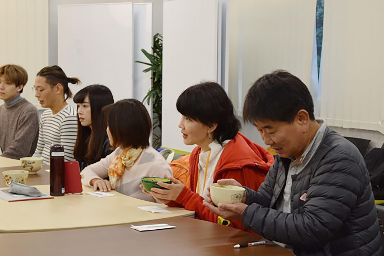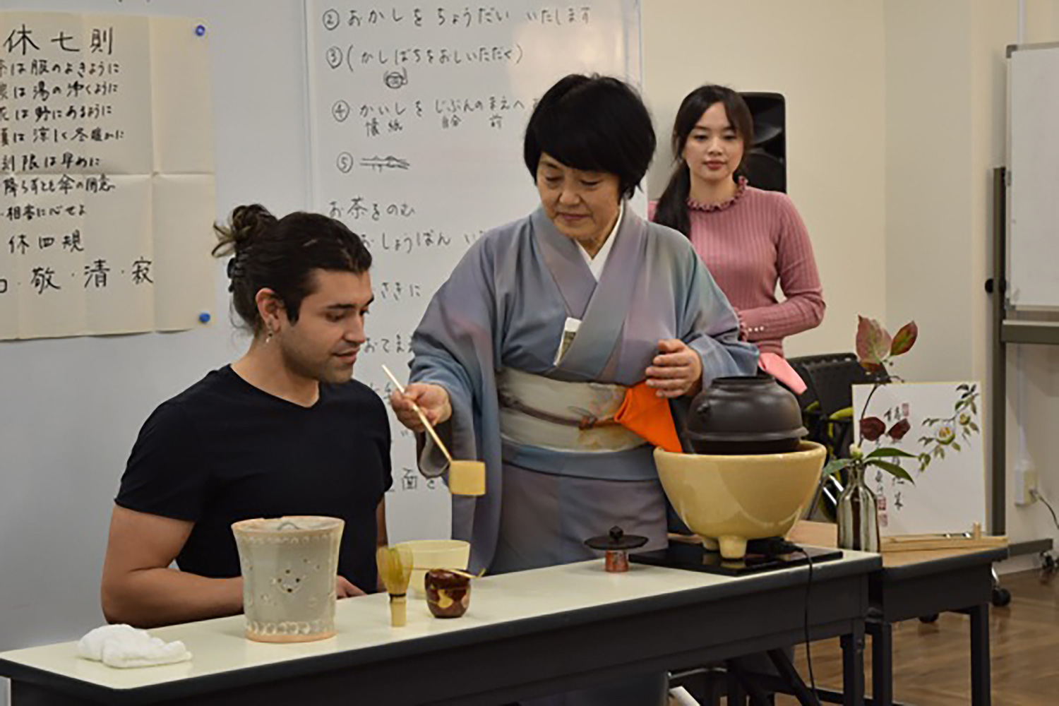 留学生たちも先生に教わりながら自分でお茶を点て、クラスメートにふるまいました。